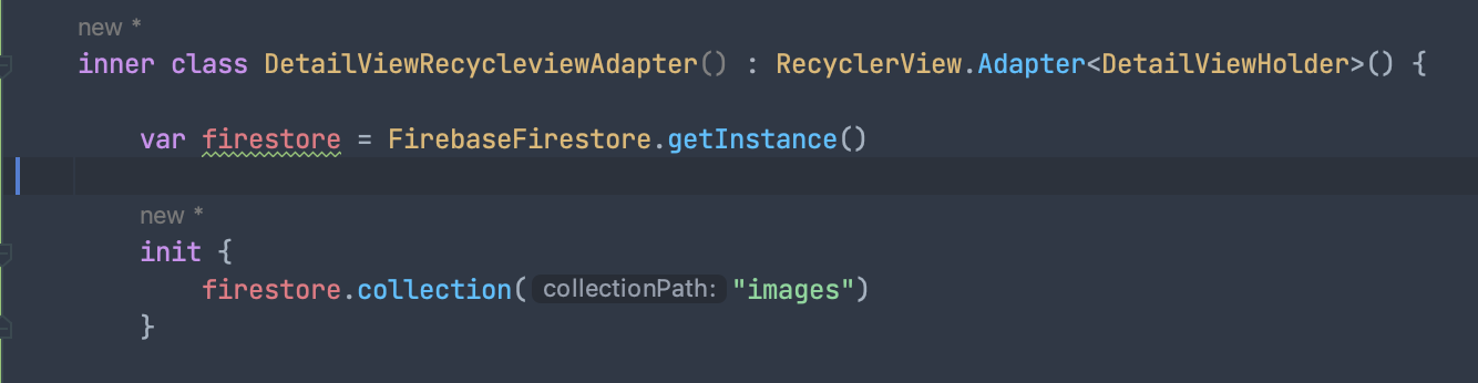- DetailViewFragment에 firebase, firestore를 연동한다. 앞서 images라는 폴더안에 사진들을 저장했기 때문에