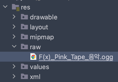 - 음원 파일을 리소스로 등록해서 이용해야 한다. 음원 리소스 디렉터리는 res/raw이다.