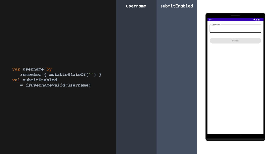 var username by remember { mutableStateOf("") }